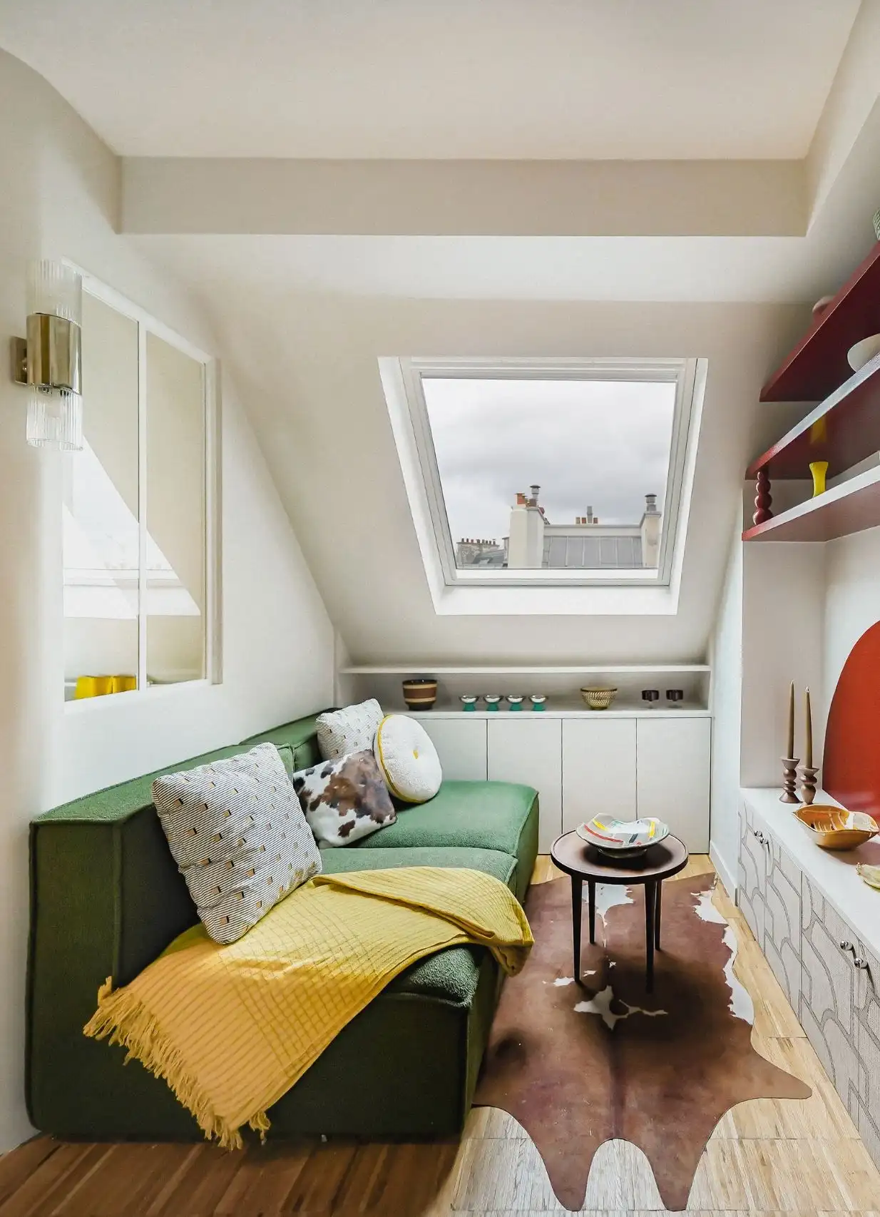 Climbing the stairs of a vintage building in the Saint-Georges district, gaining height and stepping into a vibrant cocoon beneath the zinc rooftops — conceived by Chloé, for Chloé. Welcome to her home.
